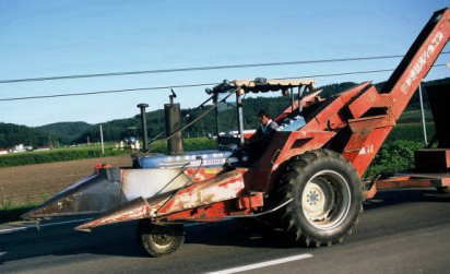 途中で本別のトウモロコシ畑でスゴイトラクター発見! 以前にもこの辺で信号待ちの時に見たものだ。あの時は、何かの祭りの仮装トラクターだと思っていたが、実在したんだ。