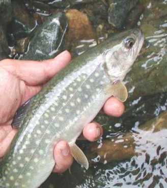 更に移動して鵡川上流部、まだ入った事がない地域だ。 牧場脇から広くもない小川に入ると、まだ大雨の名残りなのか水量は豊かにして、澄んだ流れは木々の生い茂る原野へと吸い込まれている。 ちょっとした流れの淀みにルアーを振り込む。 ゆるゆるとルアーを引いて来ると重く嬉しいアタリがあった。アメです♪ こんなにも小さな川なのに、至る所からアメマスの吐息が聞こえて来る。 水温は11℃、気を良くして道路脇のプールに移動する。 巻き返しにルアーをキャスト、まるで待ち構えて居たようにニジがヒットし、間髪入れずに宙に舞い出る! 『うっひょ〜っ♪』
