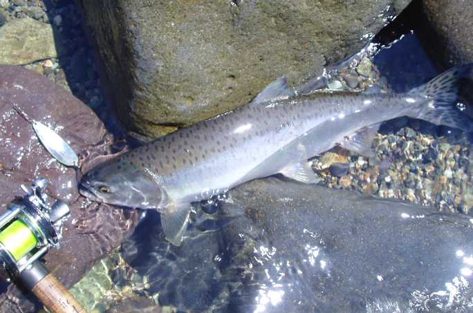 今朝は○○川でアメマスが