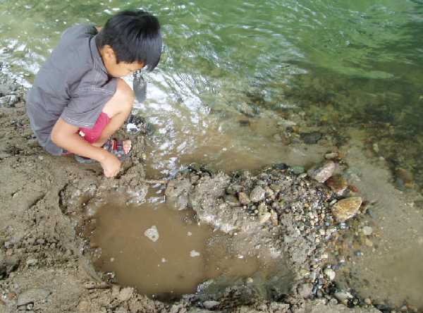 鉄男が居ると大物が釣れそうな気もするので、河原でダム作りでもさせときます。
