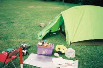 結局、滝の沢キャンプ場へ行く。同じ十和田湖のキャンプ場なのに、さっきの所よりもスイテた。また小雨がパラついてきやがった。