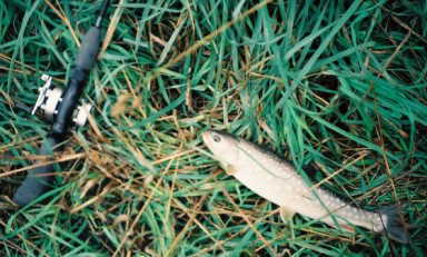 川幅10m位の清流にルアーをキャスト。ピンスポットにビシバシ入る(決まった!)。