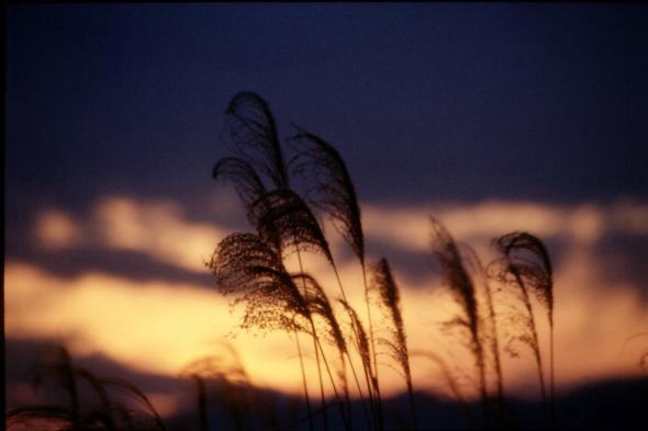 シルエットで浮かび上がったススキの枯れ具合が、冬のおとづれを感じさせる。