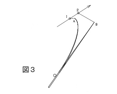 問題の初期バックラッシュが発生する原因の一つが下記になります。 ☆リリースタイミングが早い 下の図3を見てください。ロッドがまだ曲がってる状態Aでリリースしてしまうと、負荷を失ったロッドは初速1よりももっと速い速度で真っ直ぐになるBまで移動します。Aでスプールはフリーとなり、初速1と同じ速さで回転すればバックラッシュなどは起きないのですが、ルアーの負荷を基点として速度A-Bでスプールは回転し、更にはスプールを回転させるエネルギーとして初速1も食われてしまいます。 なんともロッドの復元力でルアーの初速よりも速い回転になってしまい、挙句に初速も食われてしまったら完全に需要<供給になってしまって瞬間バックラッシュなのです。 リリースタイミングが早い程にルアーの軌道はフライぎみになり、「おぉ〜高く飛んだ♪」などと思ってると手元は再起不能状態です。だがこの時点でも親指で回転を読んでさえいれば、被害は最小限で防げるものなのです。 |